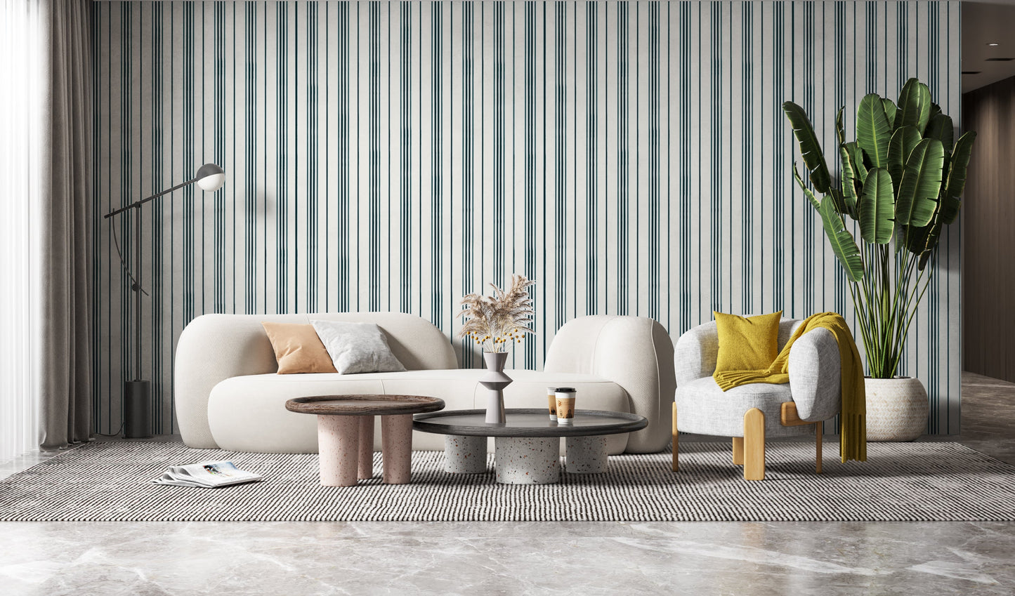 Elegantly imperfect, this lined pattern brings rhythm and raw charm to your space.