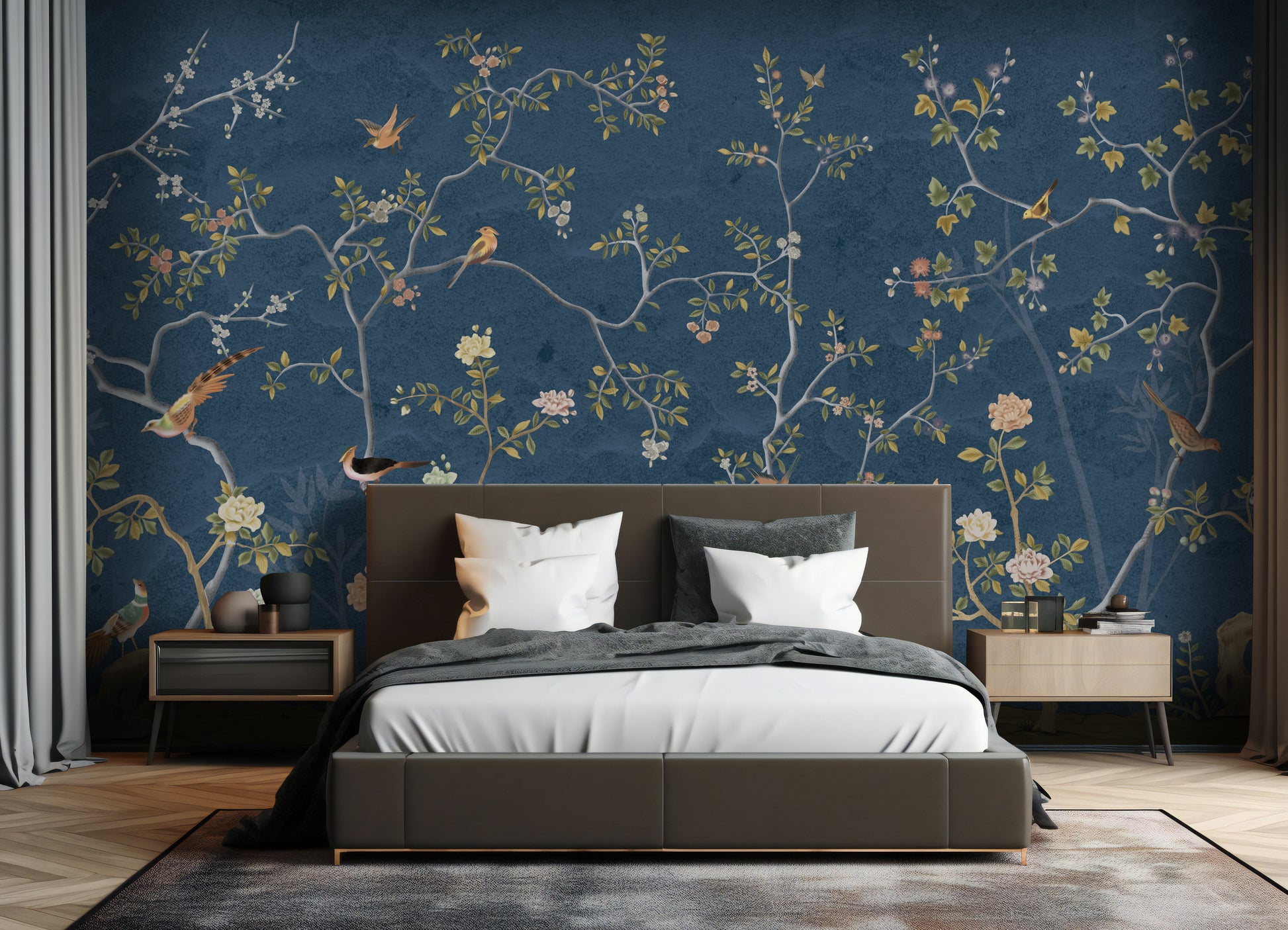 Add elegance to any room with Vaatika wallpaper’s nature-inspired design, where delicate branches and vibrant birds bring life and tranquility to your space.