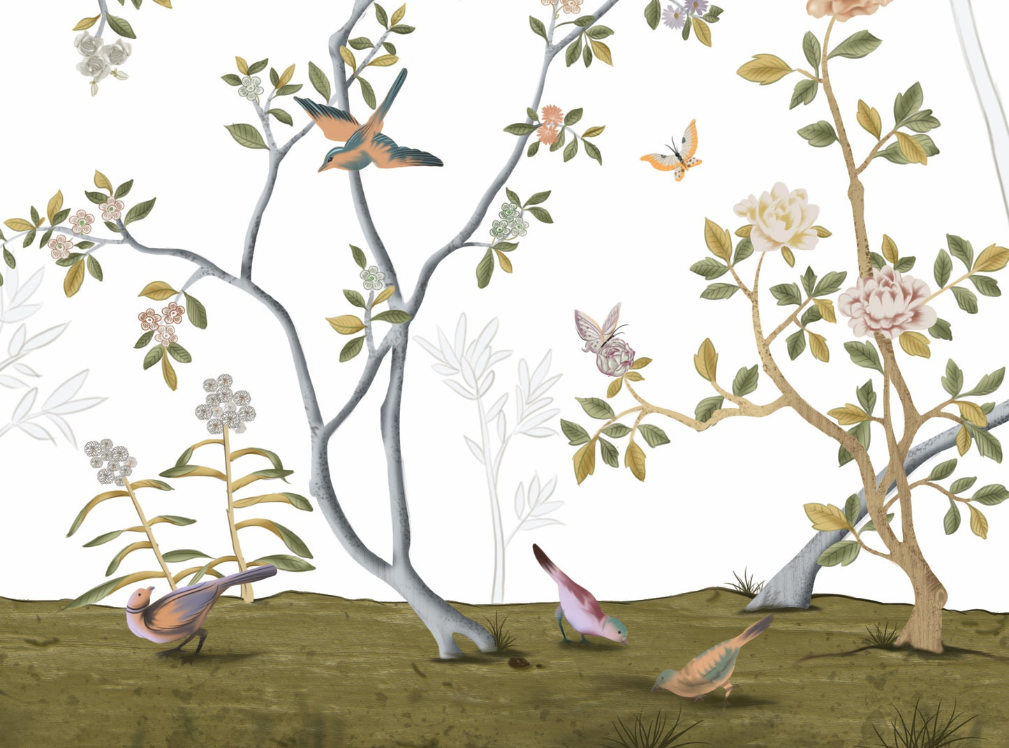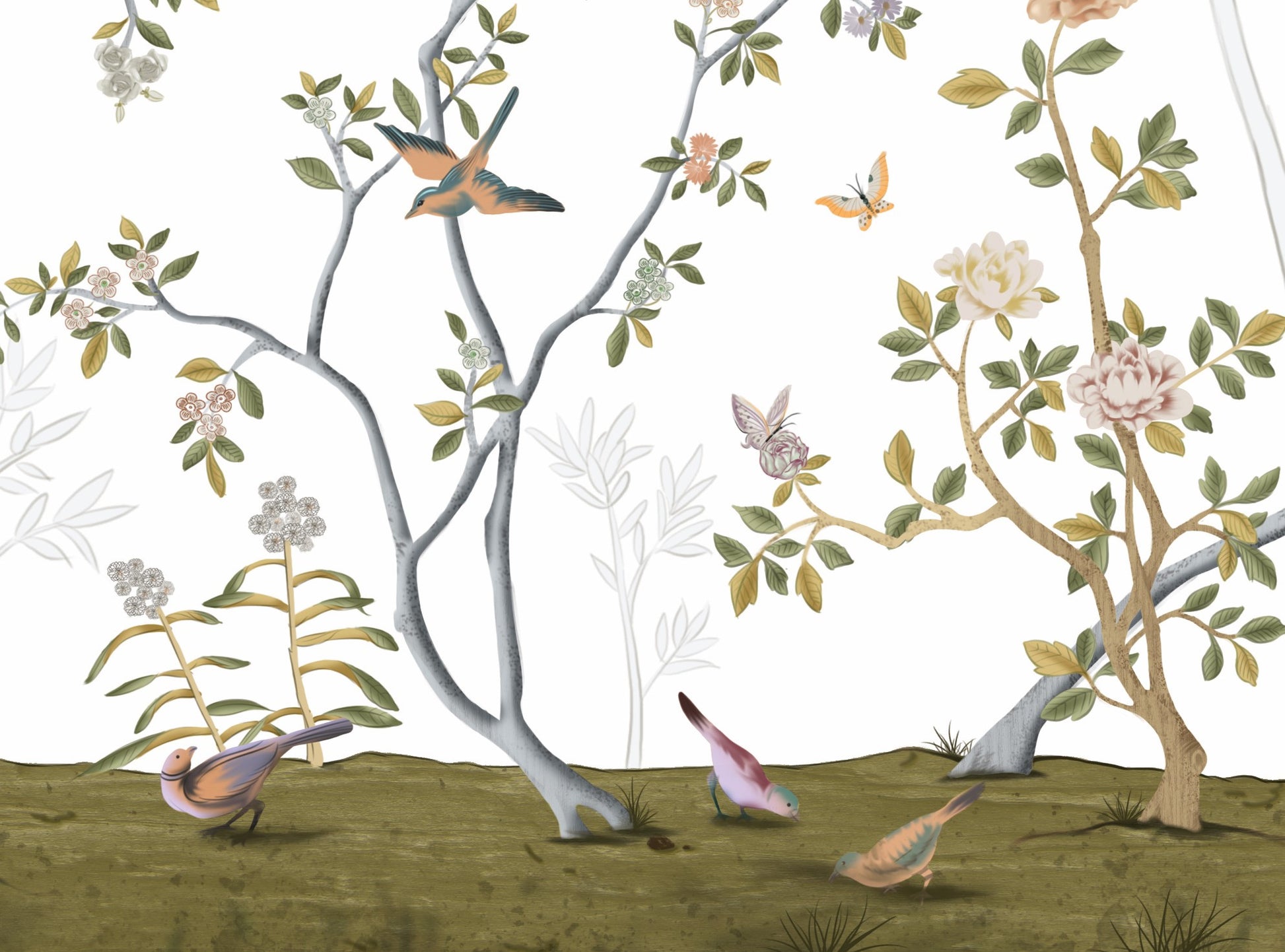 Add elegance to any room with Vaatika wallpaper’s nature-inspired design, where delicate branches and vibrant birds bring life and tranquility to your space.