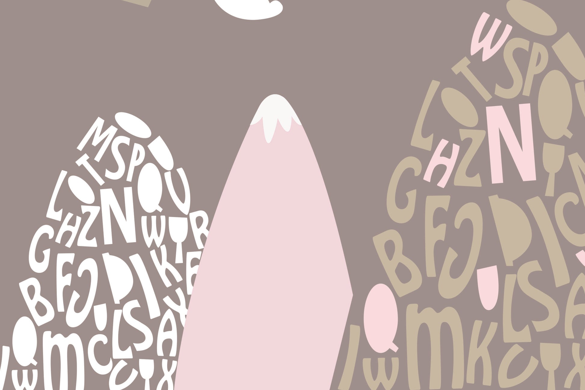This adorable kids' wallpaper features whimsical mountains adorned with playful letters, creating a fun and educational backdrop for any child's room.