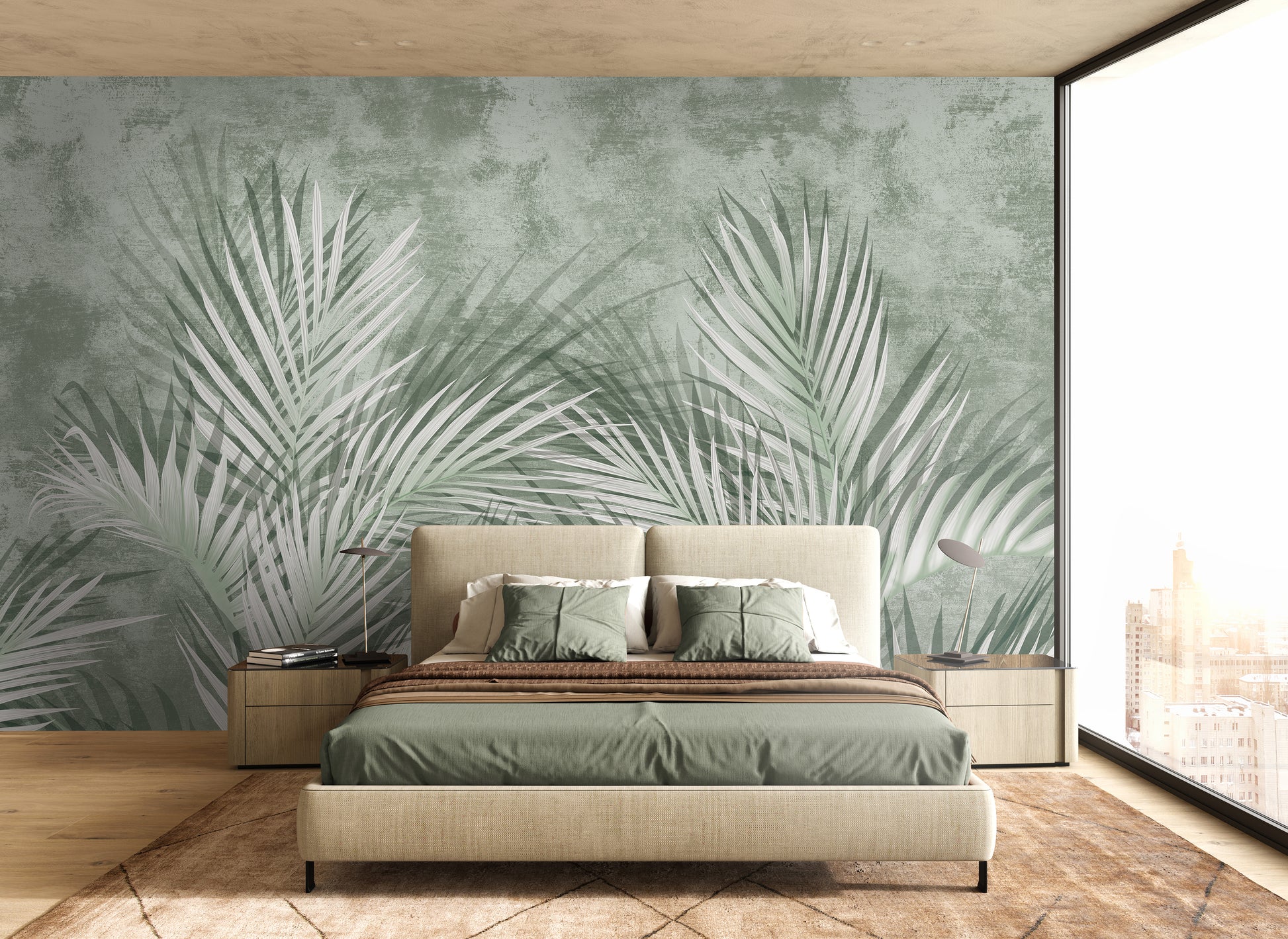 "Dive into the ambiance with Tropical Leaves III wallpaper, where the interplay of palm leaf designs and gentle shadows creates a mesmerizing tropical allure, perfect for bringing a slice of paradise into your home."