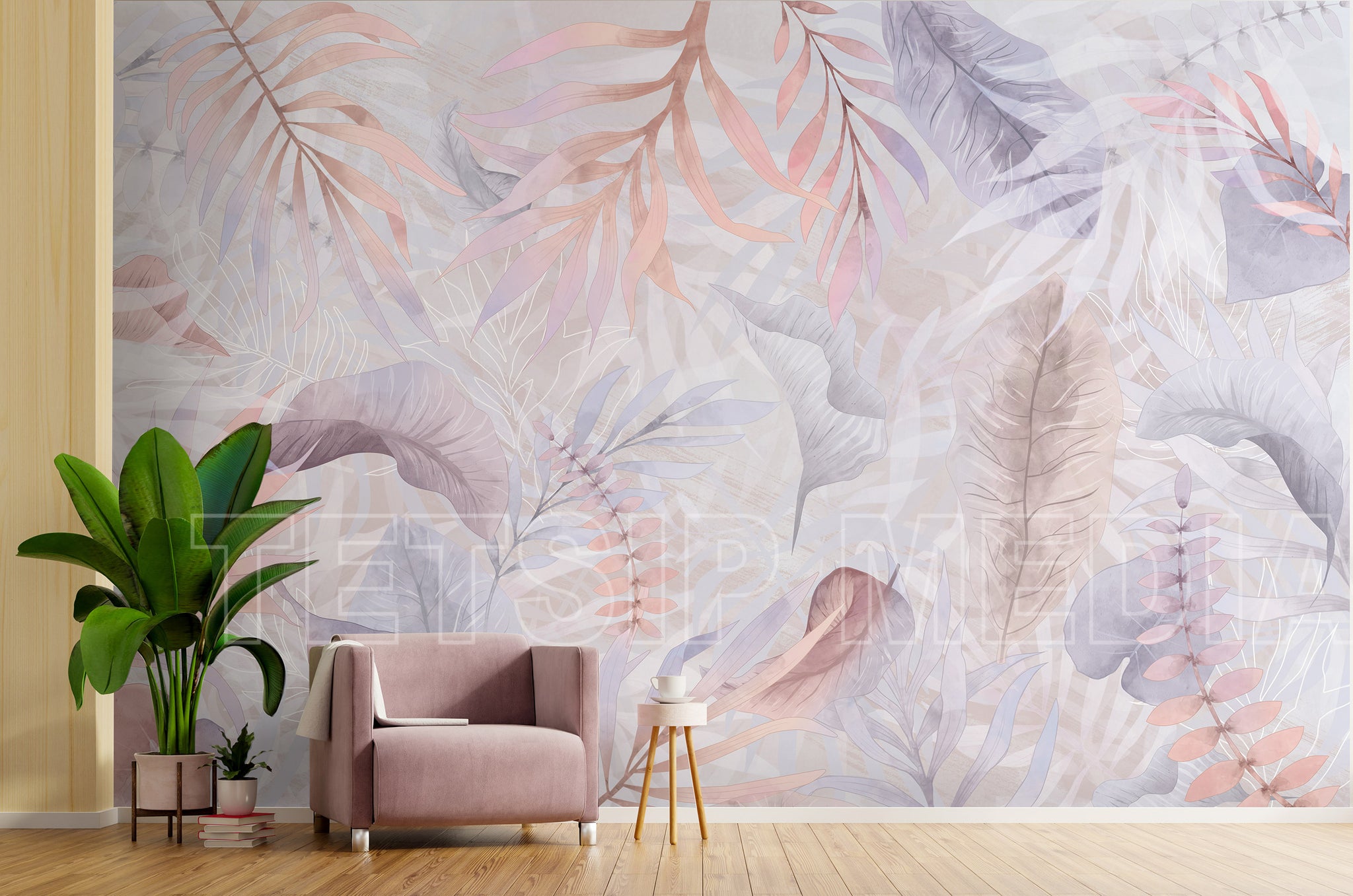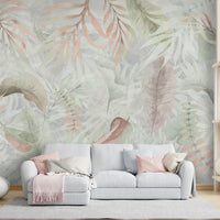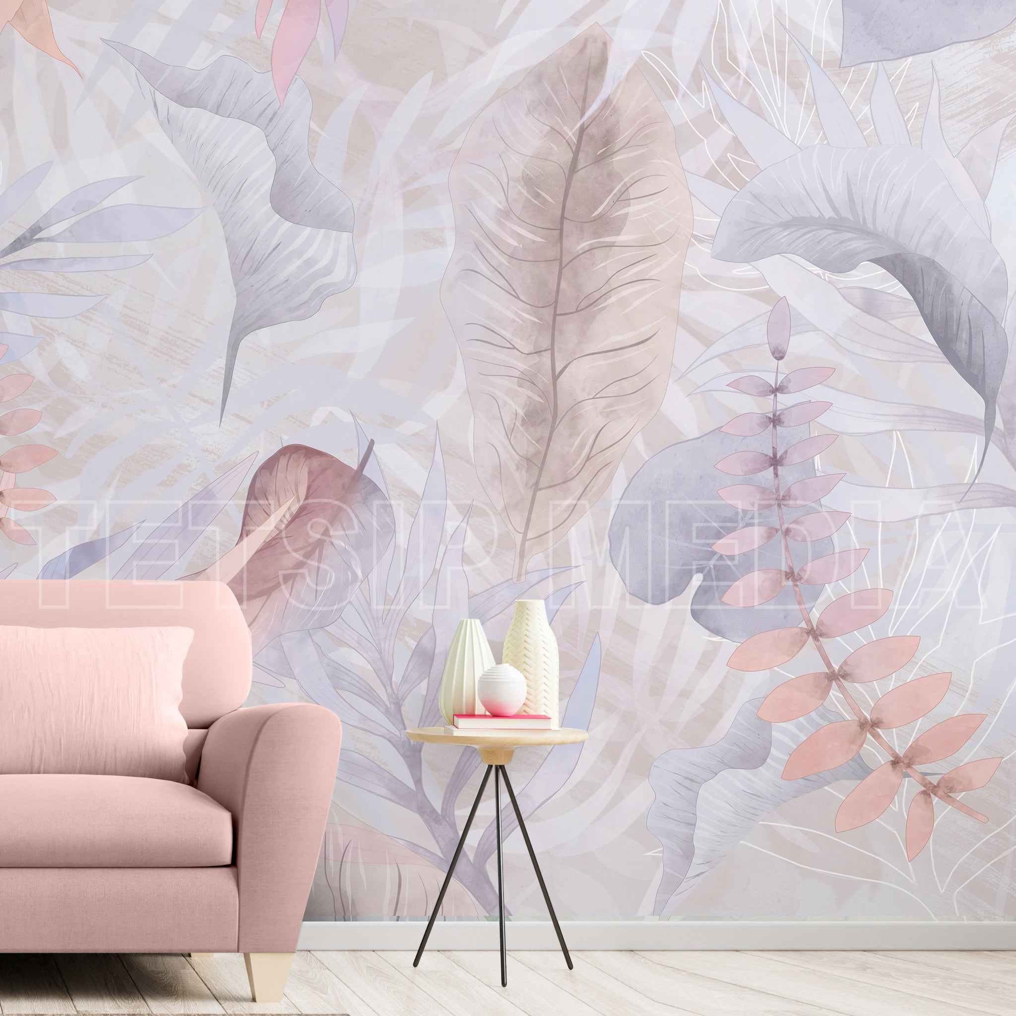 Bring a breath of fresh air to your space with Tropical Fusion II wallpaper, where an enchanting mix of pastel-colored leaves designs offer a soothing backdrop, radiating warmth and serenity.