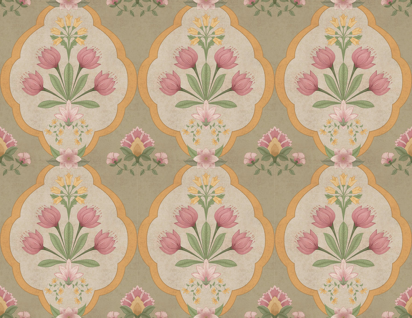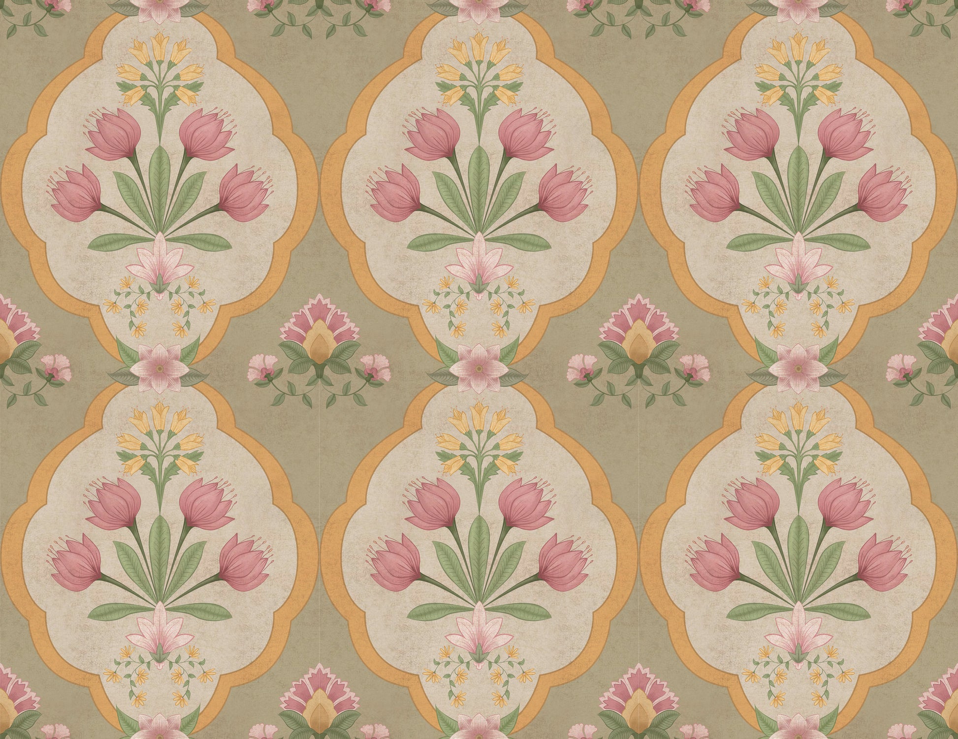 "Infuse your walls with timeless elegance using our floral damask wallpaper, where intricate patterns meld with delicate blooms, creating a luxurious ambiance in any room."