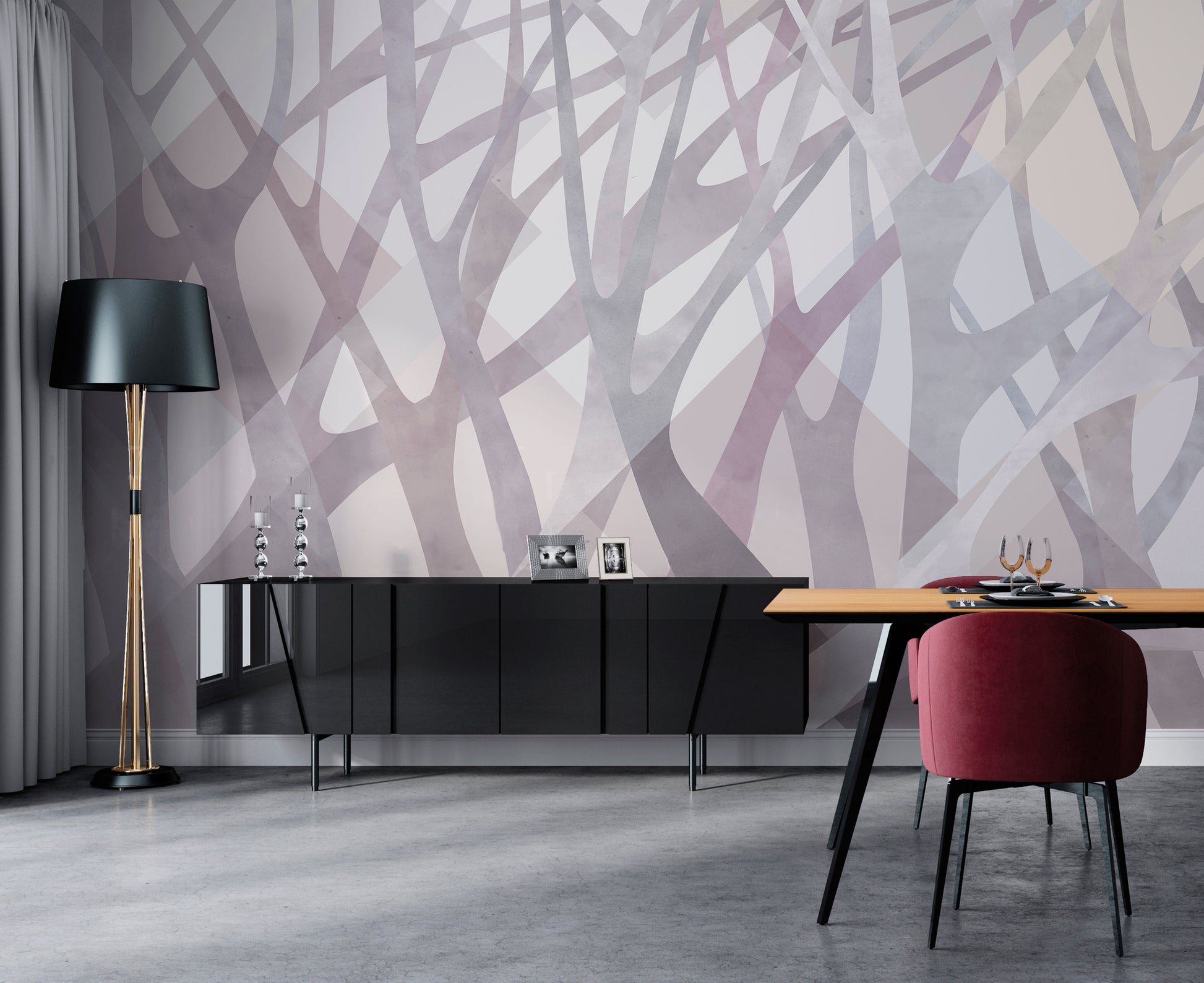 "Add a sophisticated touch to your workspace with our abstract branches wallpaper, featuring intricate patterns and a modern aesthetic."