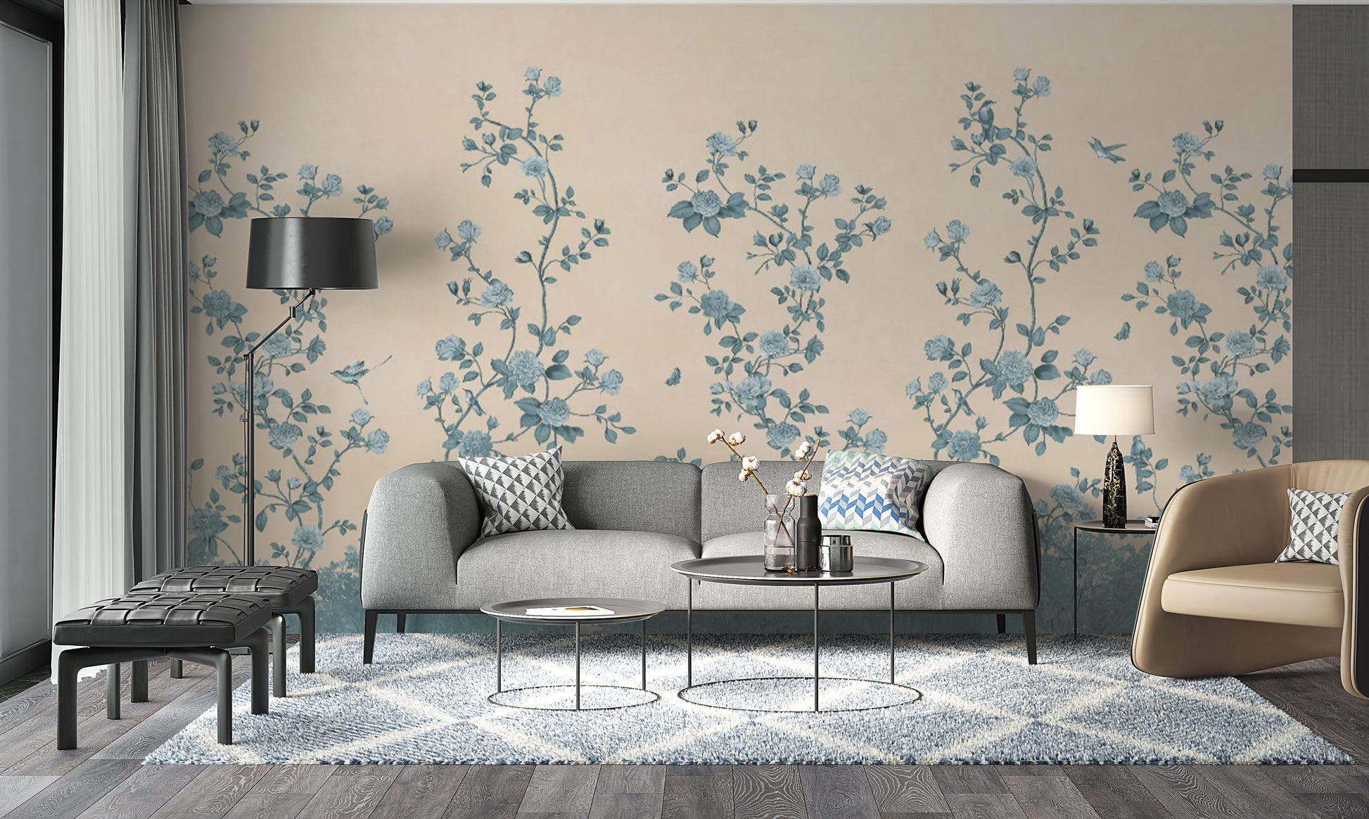 Infuse your space with a vintage charm where blooming vines and subtle hues intertwine, crafting a tranquil haven that's both artful and inviting.